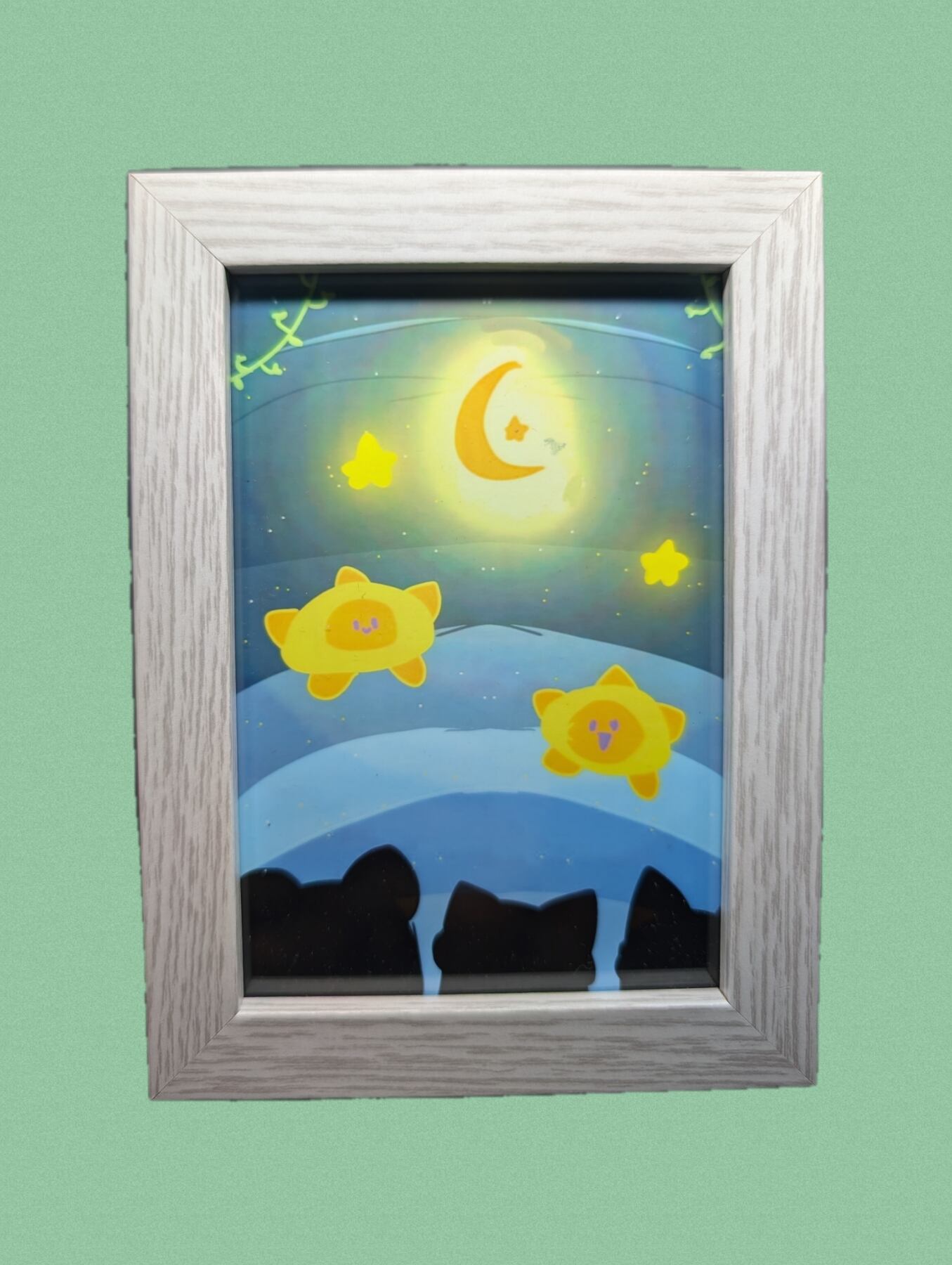 夜空をテーマにした幻想的なアートです。りりかアート④デザインヨゾラは、深い青色と美しい星々が特徴で、見る人に静かな感動を与えます。この作品は、リビングや寝室など、さまざまなスペースに心地よい雰囲気を演出し、毎日のリラックスタイムを特別にしてくれます。おしゃれな額付きなので、すぐに飾れるのがうれしいポイントです!
